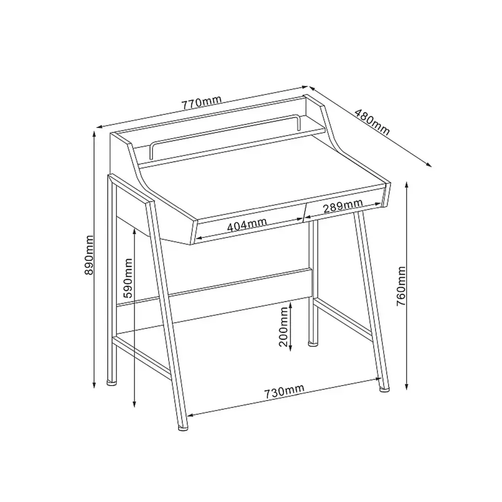 Dimensions: Length – 77cm, Depth – 48cm, Desk Height – 76cm, Total Height – 89cm