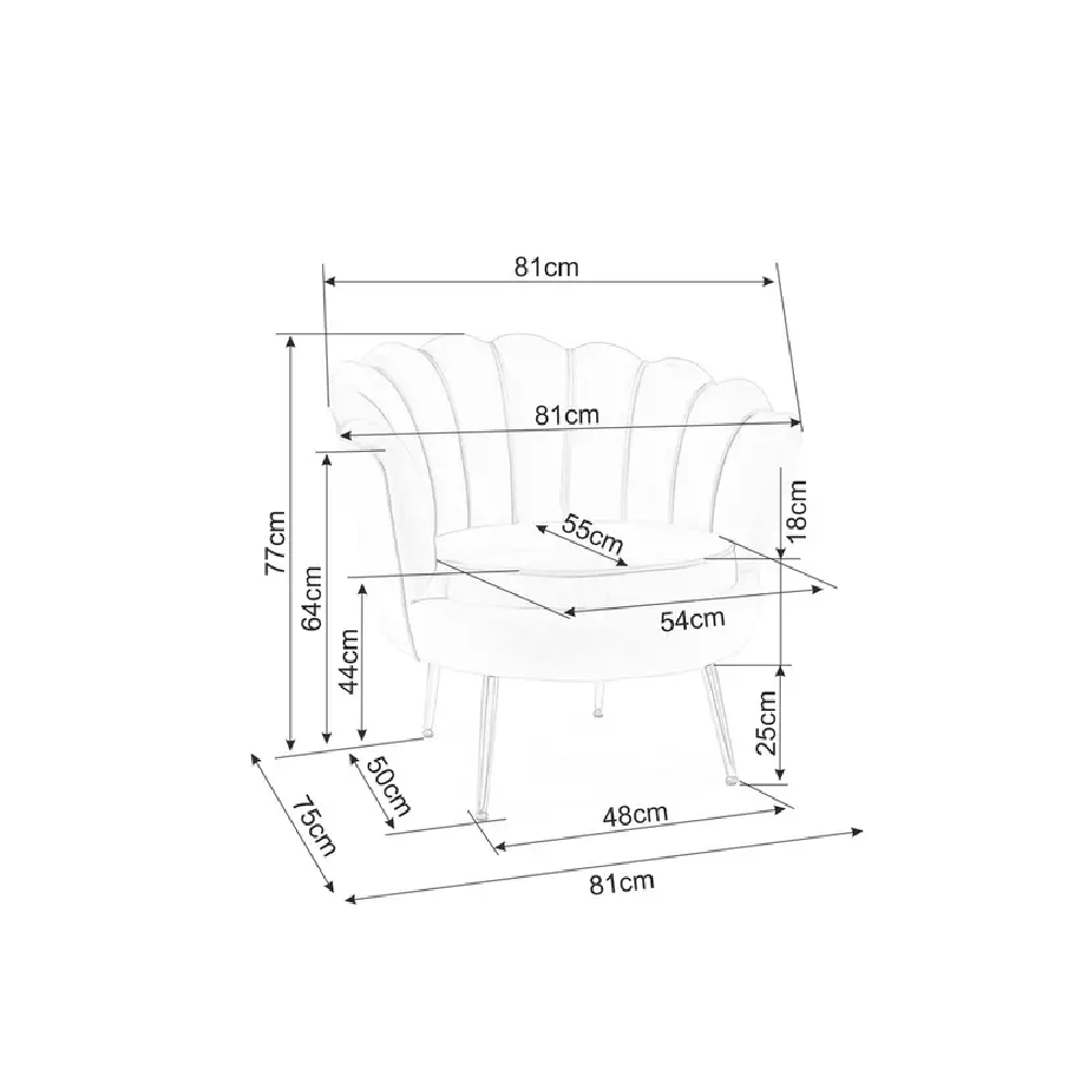 Dimensions: Width: 81cm, Seat Height: 44cm, Total height: 77cm
